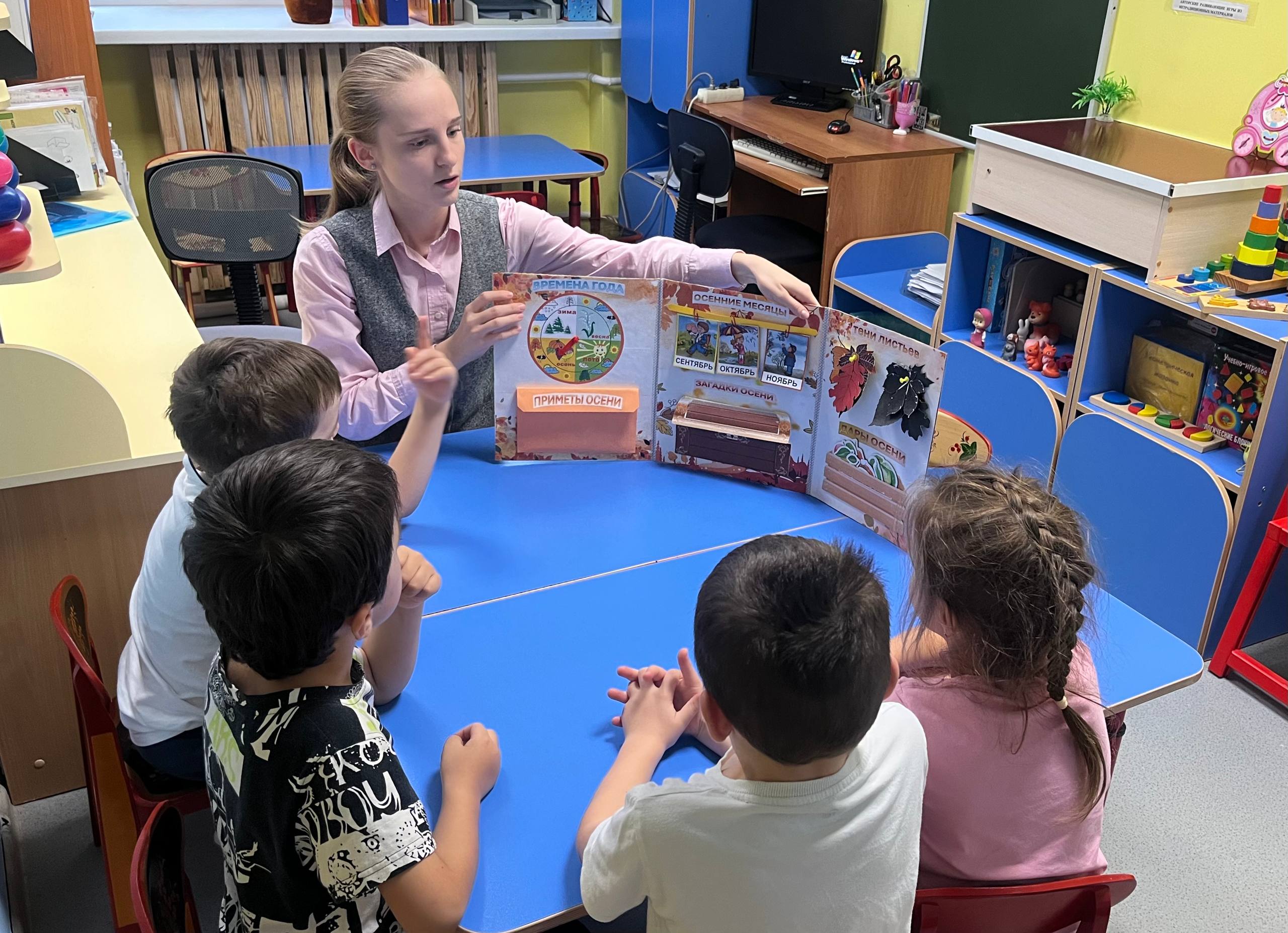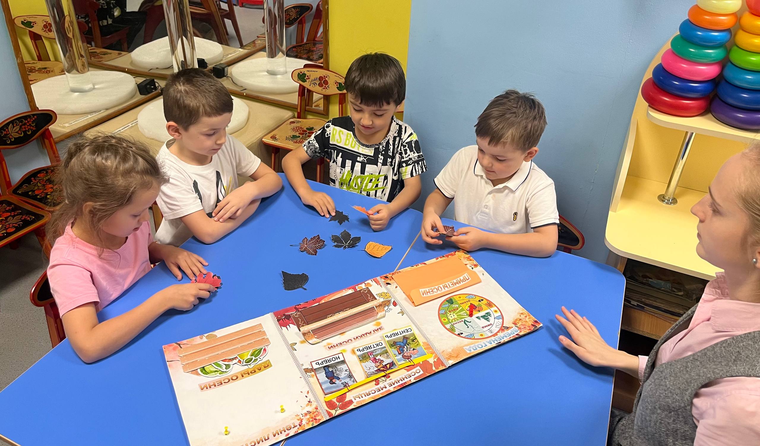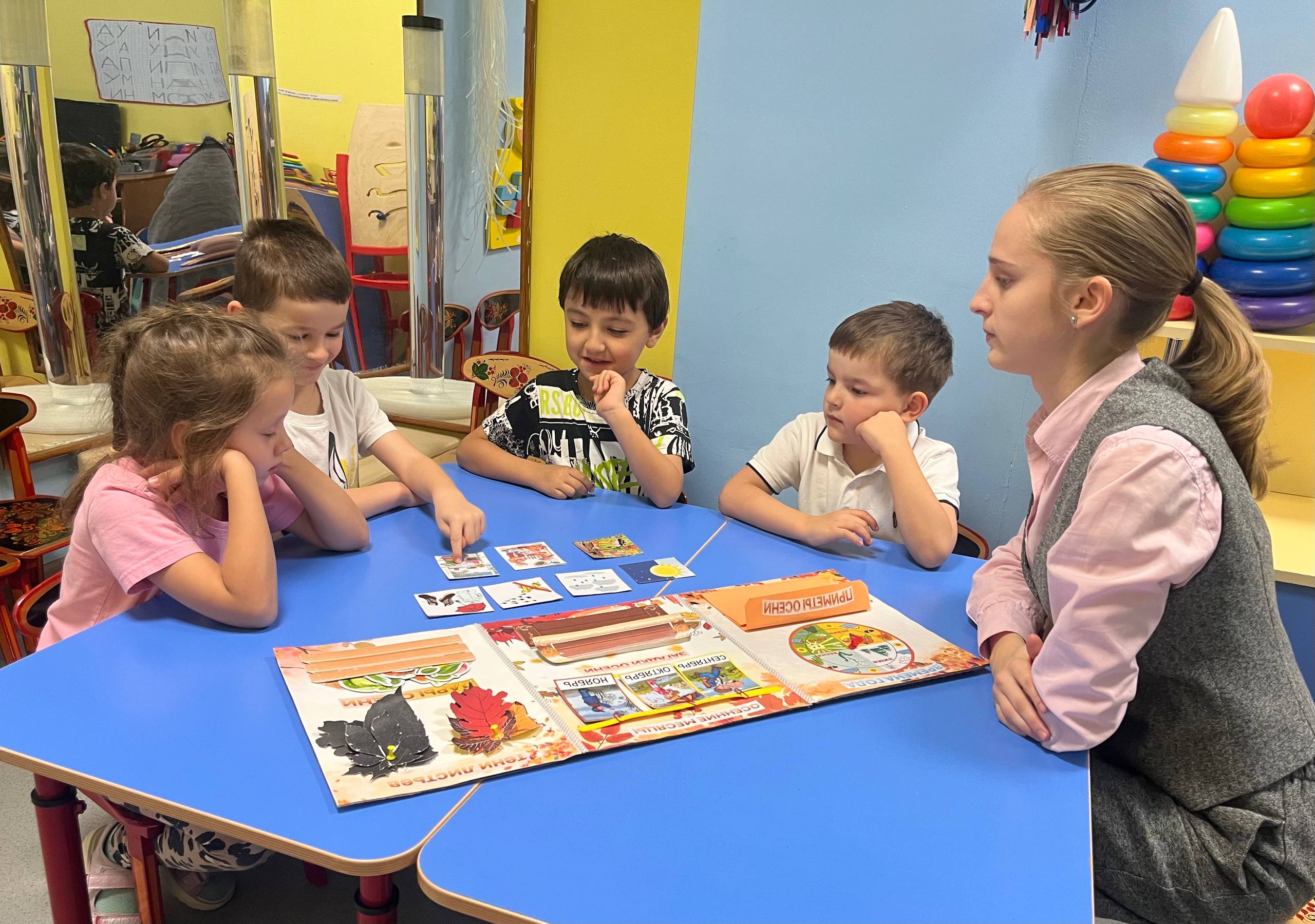 17 ноября в логопедическом кабинете учитель-логопед Кован Мария Александровна провела открытое занятие по развитию лексико-грамматического строя речи с воспитанниками, получающими логопедическую помощь. Занятие проводилось с использованием авторского интерактивного дидактического пособия «Приходи к нам, осень, в гости».