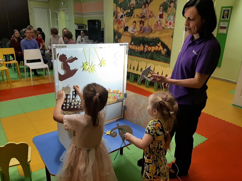 25 февраля педагог-психолог Татьяна Алексеевна Гунуева провела встречу «Родительская среда». Тема очередной встречи — «Приобщение дошкольников к чтению» была интересна и родителям и детям потому, что интерес к книгам мы прививаем с помощью театра теней.