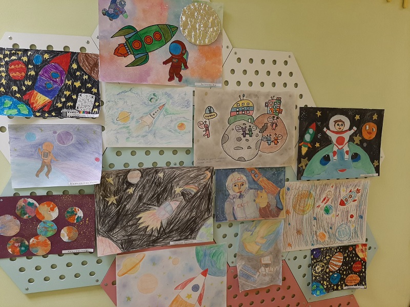 - Рисунки о космосе: Каждый нарисовал свою мечту о полете к далеким планетам, о встрече с дружелюбными пришельцами или о прогулке по Луне.