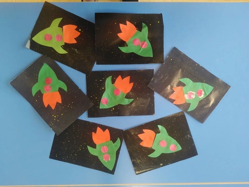 - Космические поделки: Мы мастерили свои собственные ракеты, инопланетян и звезды, чтобы украсить нашу группу и создать настоящую космическую атмосферу!